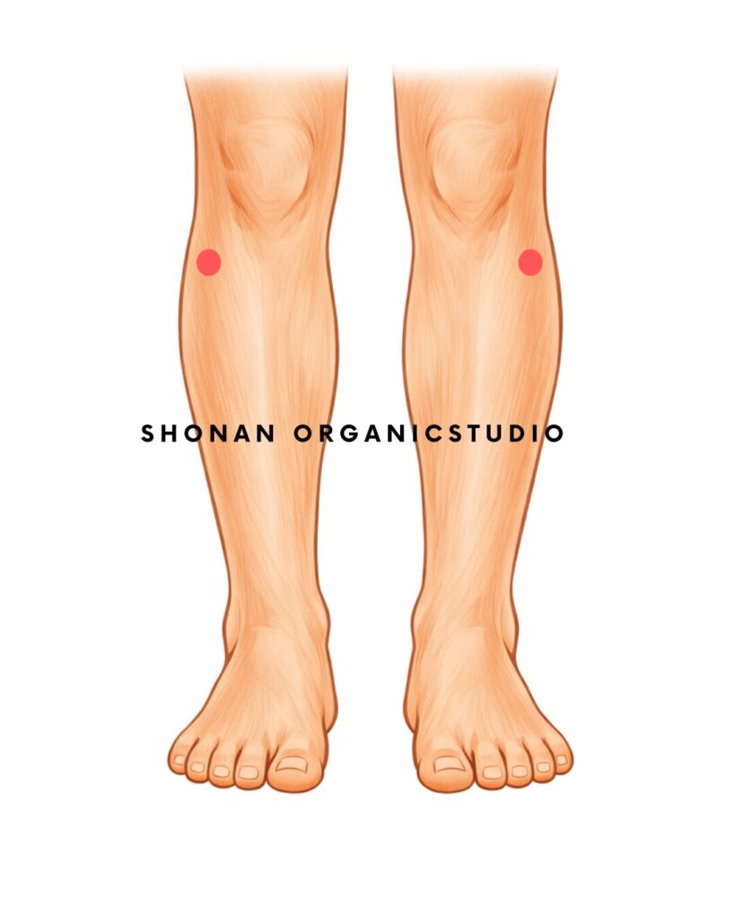 足の三里 × 三陰交を左右同時に温める「陰陽」打ち抜きがおすすめ。