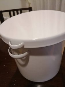 消毒した皿などを重しとしておきその上に2キロの重しをする。
